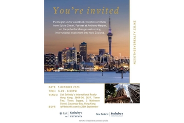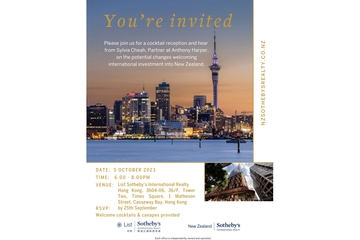 Please join us for a cocktail reception and hear from Sylvia Cheah, Partner at Anthony Harper, on the potential changes welcoming international investment into New Zealand.