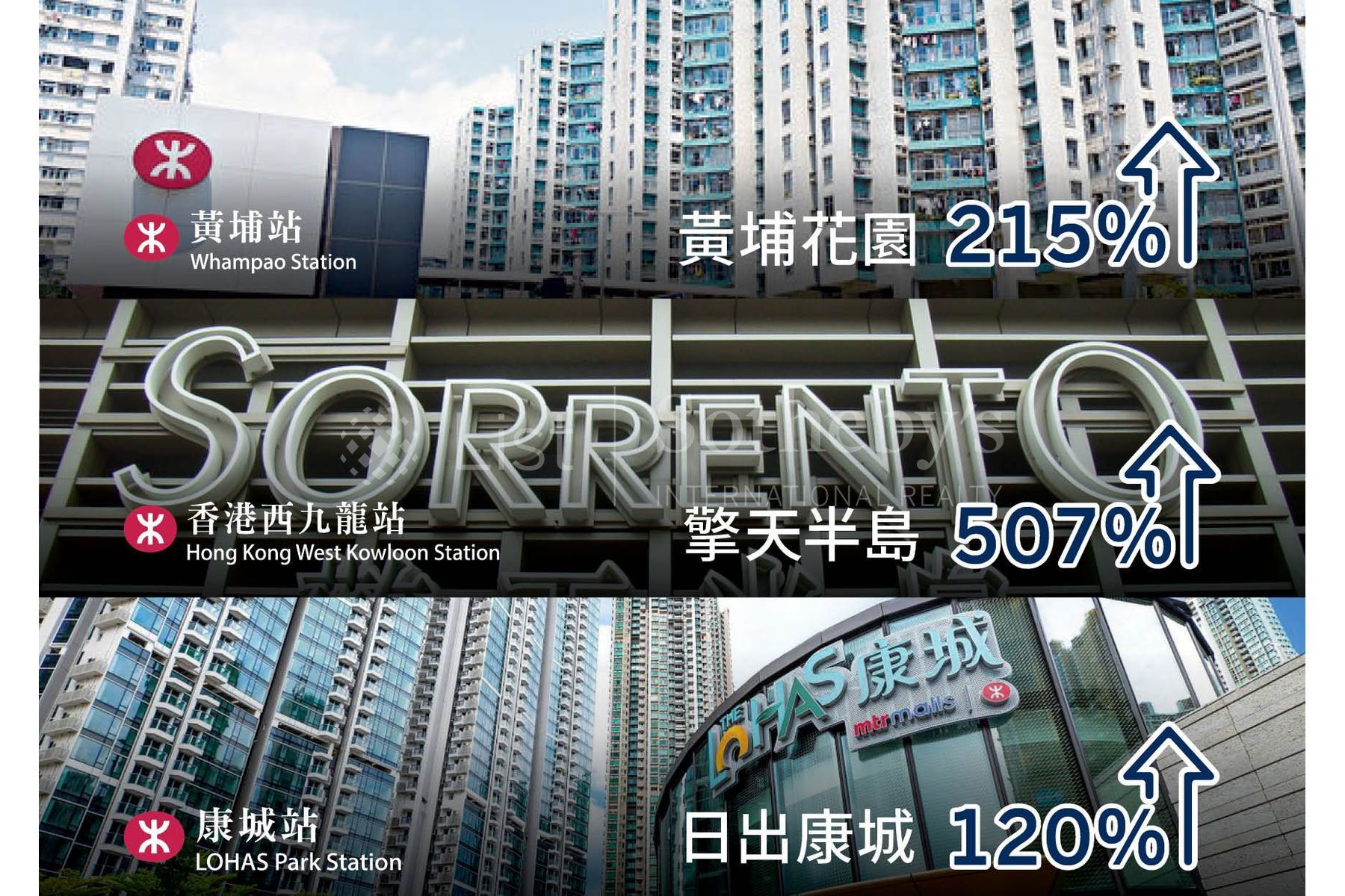 鐵路沿線物業一直備受追捧,尤其當新線路通車後,附近屋苑樓價急升,例如黃埔花園、擎天半島及日出康城等。